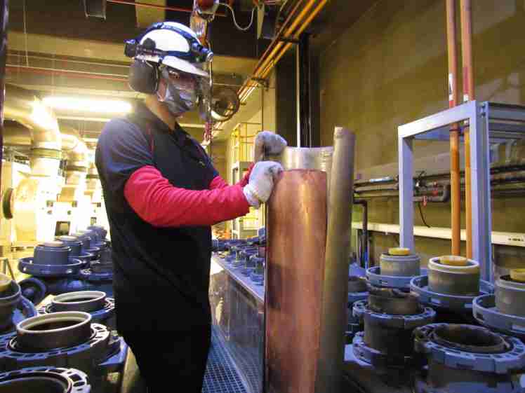 蓝狮在线将废弃物转化成有效的工业或民生原物料,,图为废铜液淬炼后再制成纯度极高的铜管