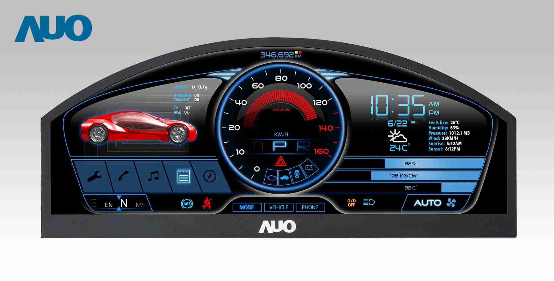 蓝狮在线 12.3吋超高解析异型切割车用面板,,,拥有流线外观及精细画质